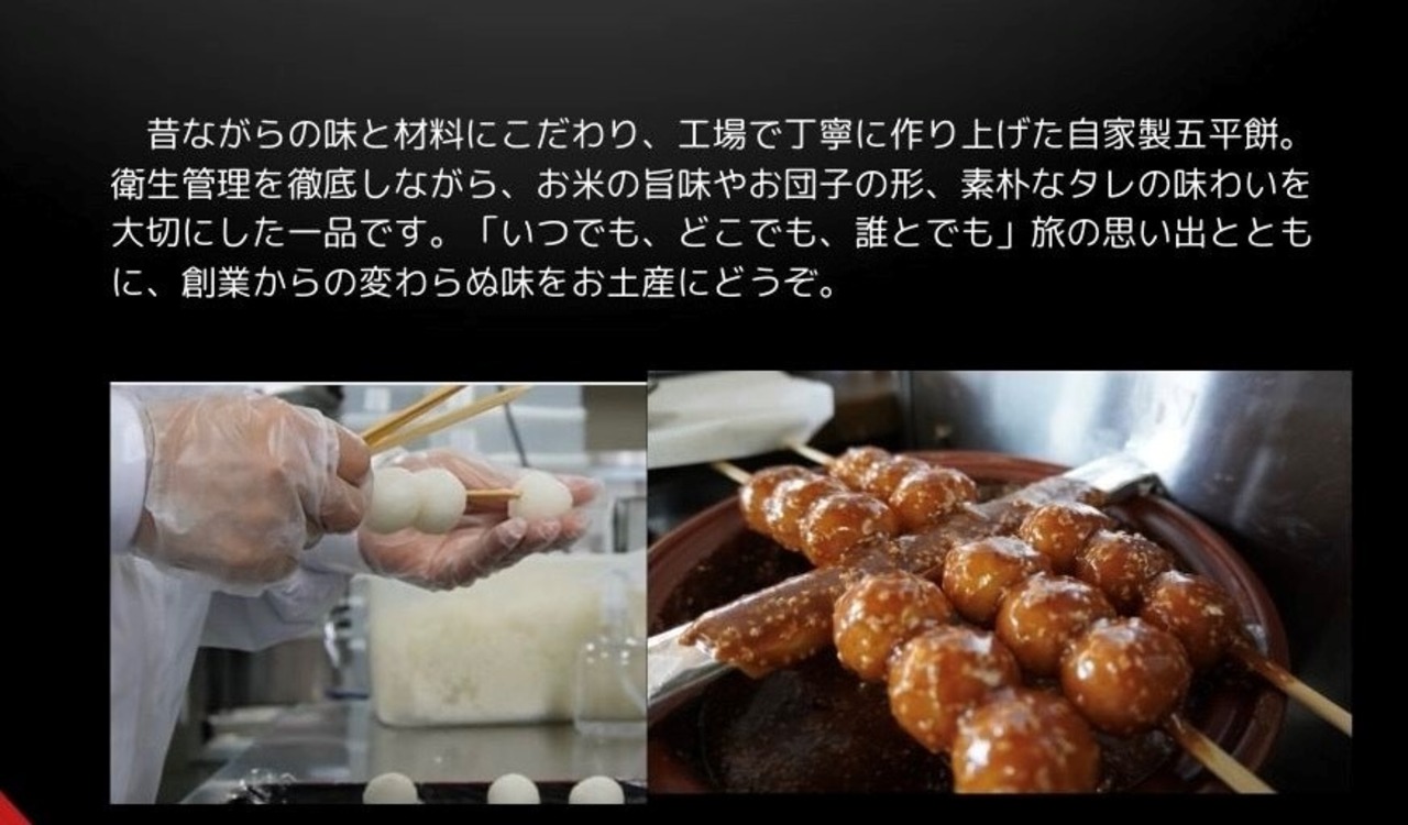 ・くるみ ・えごま ・落花生 ・白ごま を使用し、懐かしくもやさしい旨味が引き立つ甘いタレは馬籠館自慢のオリジナルごへいタレです。