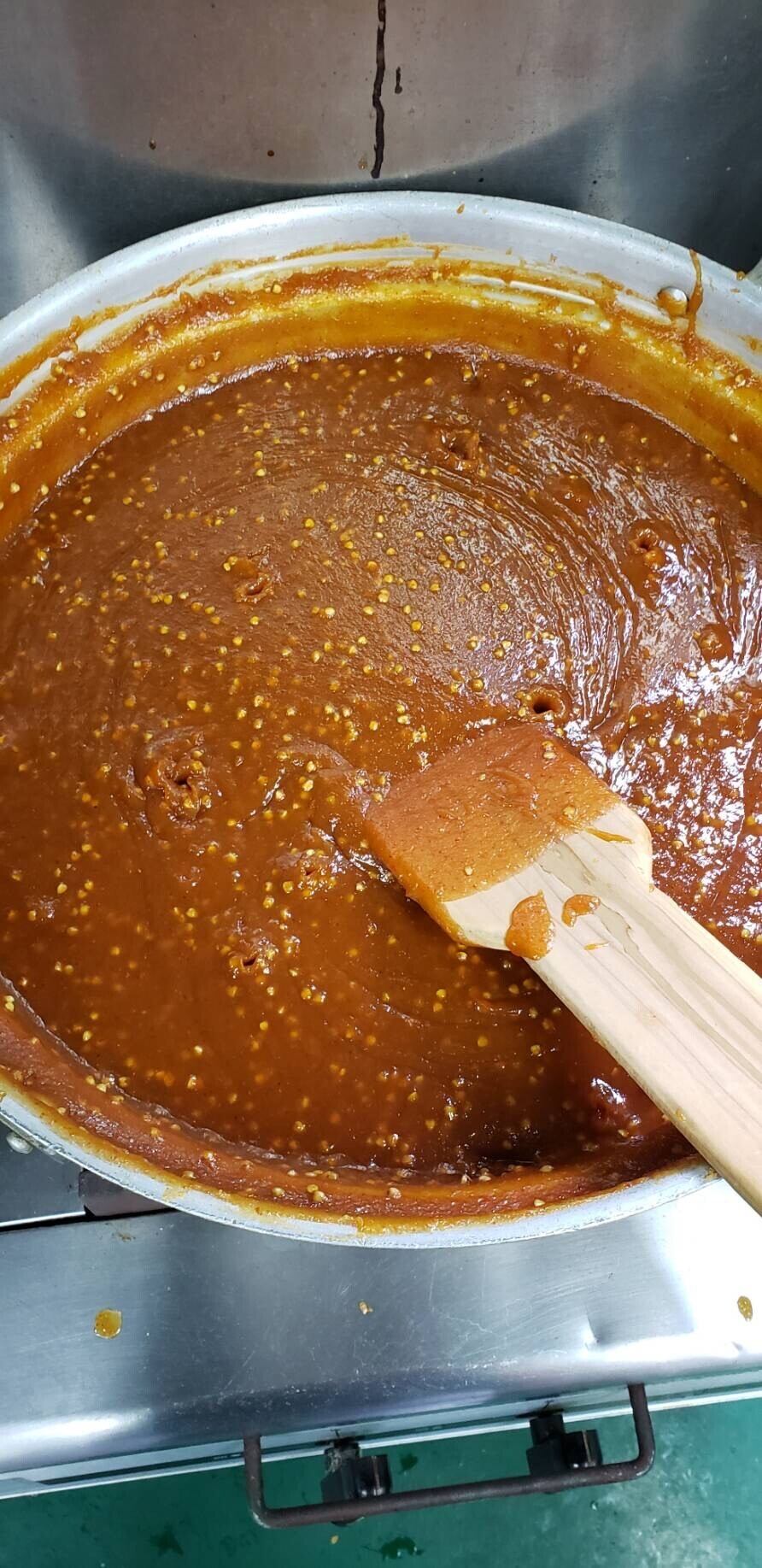 国内醸造のみそにそばの実、一味唐辛子を入れた馬籠館特製のそばみそです。
