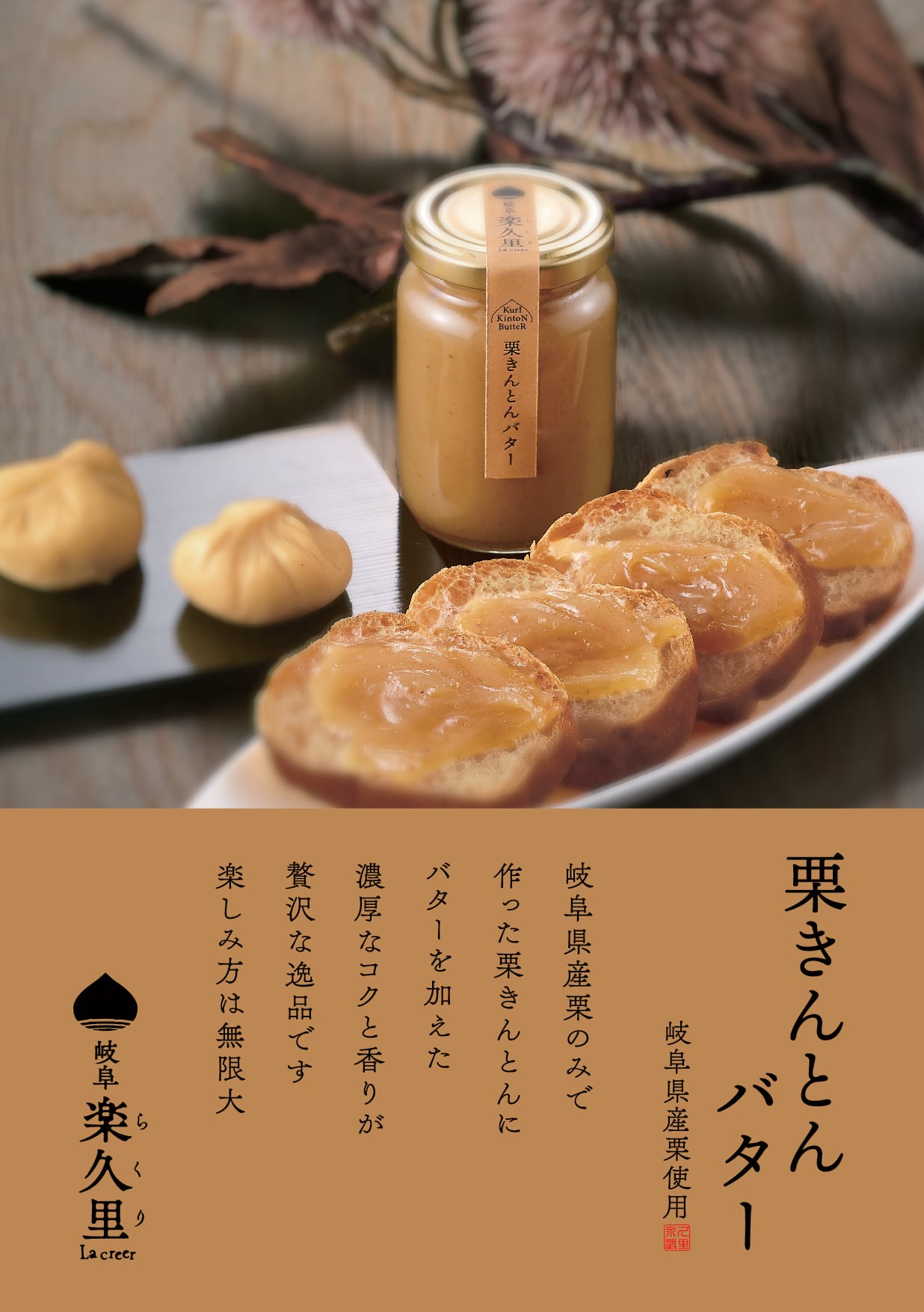 毎年秋に収穫される岐阜県産の栗を贅沢に使用し、丁寧に作り上げた栗きんとんで作ったバター。